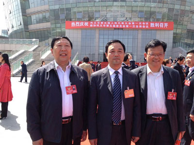 政協(xié)鞏義市五屆一次會(huì)議先科法人牛乾周(左)與張市長(zhǎng)(中)合影留念